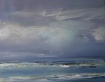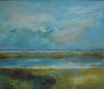 2015Kleurenpracht is een schilderij wat ik op basis van mijn herinnering gemaakt heb. De overgang van een nat gebied naar zee waarbij de kleur een hoofdrol krijgt. (ingelijst)
