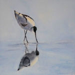 2016Wat een schitterende gezicht is deze fouragerende kluut (ingelijst) Verkocht